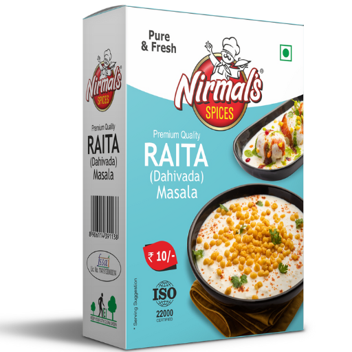 Sprinkle ½ teaspoon of Nirmal’s Raita Masala over curd, raita, or dahivada before serving.